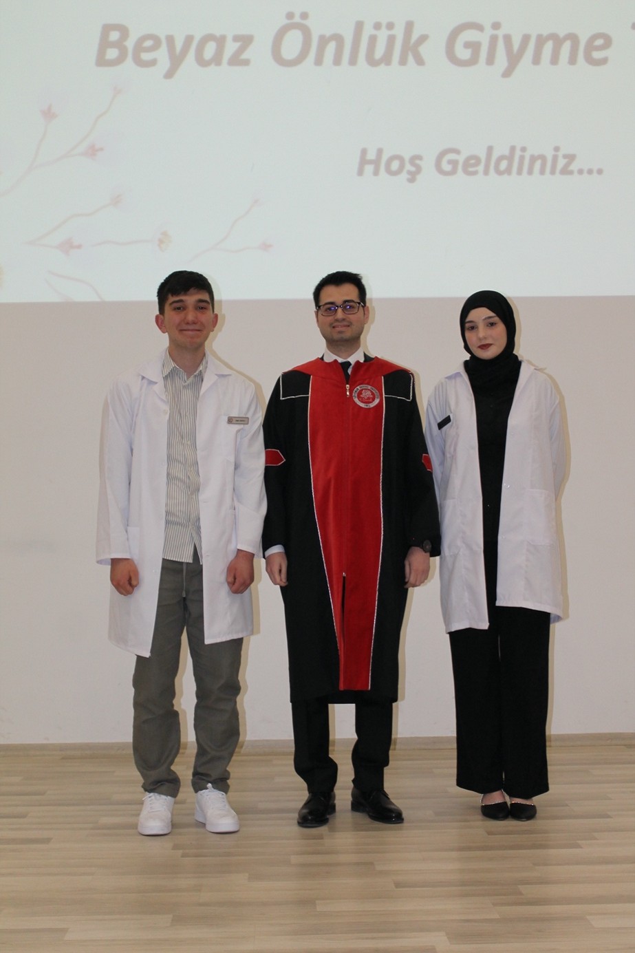 Programın devamında eczacı adayı olan öğrenciler, akademisyenlerin eşliğinde beyaz önlüklerini giyerek meslek hayatlarına ilk adımlarını attı.