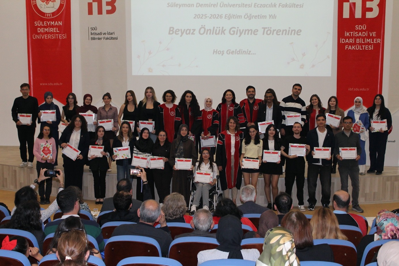 Süleyman Demirel Üniversitesi Eczacılık Fakültesi 2025-2026 Eğitim-Öğretim yılı “Beyaz Önlük Giyme Töreni”, 14 Nisan 2026 tarihinde İktisadi ve İdari Bilimler Fakültesi A Salonu’nda gerçekleştirildi.
