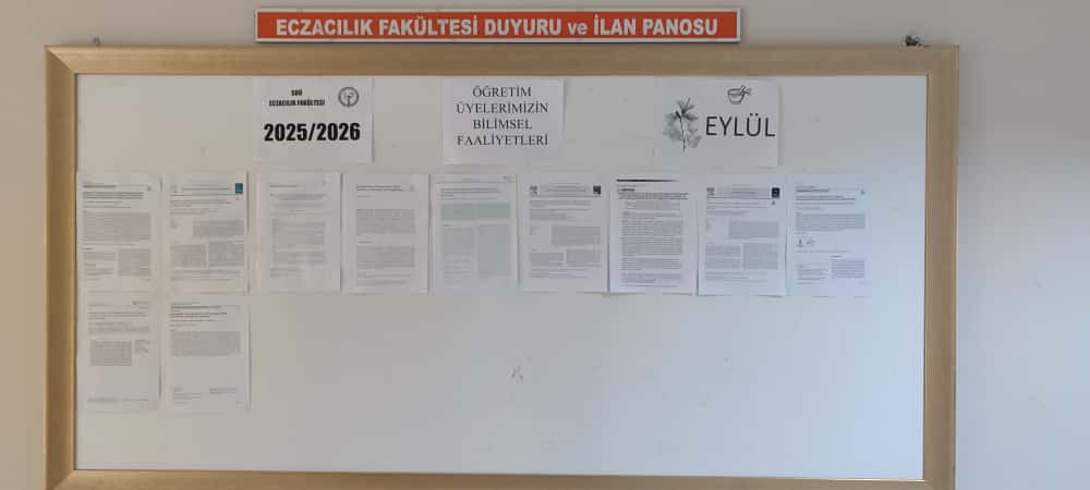 Fakültemiz öğretim üyelerinin ulusal ve uluslarası dergilerde yayınlanmış çalışmaları, duyuru panosuna asılarak ilan edilmektedir. -KANIT |
